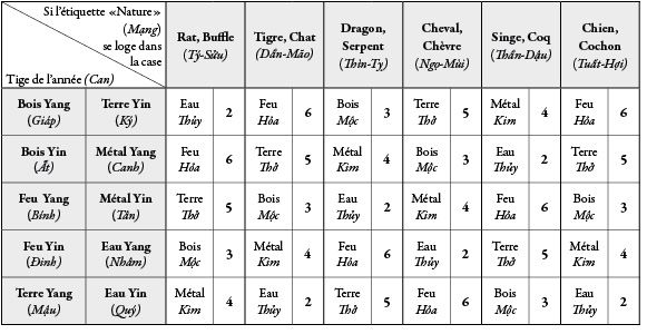 Repérer la position de l'étiquette "Nature"de votre horoscope et la tige de votre année de naissance. Repérer le chiffre du cycle du Temps (Inscrire dans votre tableau l'élément et le chiffre, au centre).